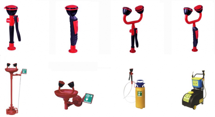Vòi rửa mắt khẩn cấp gắn trên bàn, trên tường hoặc di động.